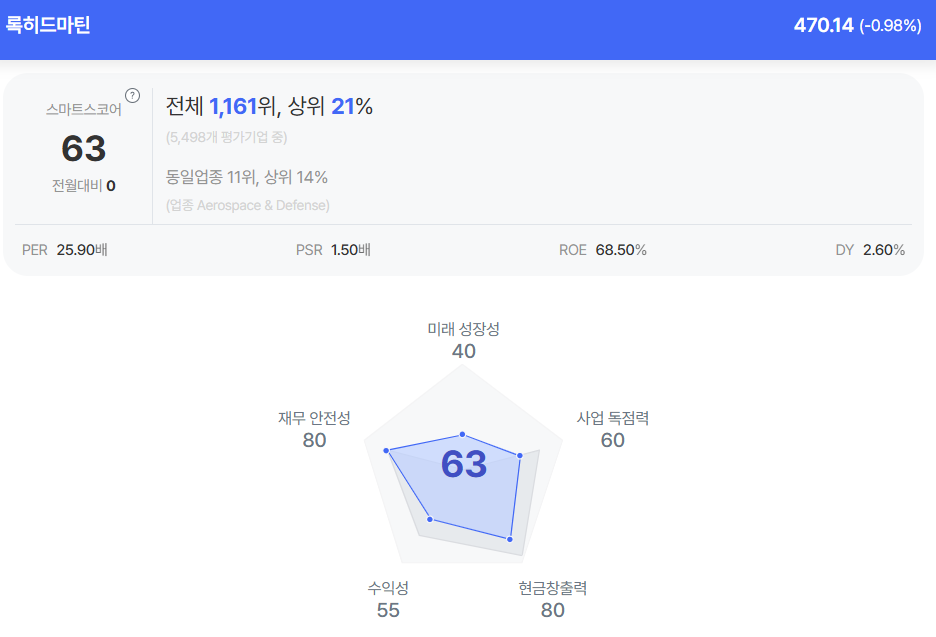 | 록히드마틴 종목진단 (출처=초이스스탁) |