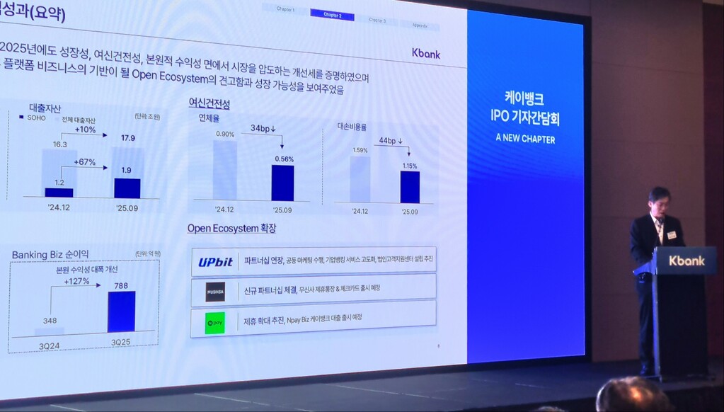[알파경제=김지현 기자] 세 번째 기업공개(IPO)에 도전하는 케이뱅크가 상장을 계기로 개인사업자·중소기업(SME) 시장 진출과 디지털 자산 분야 경쟁력을 강화하겠다는 구상을 내놨다.