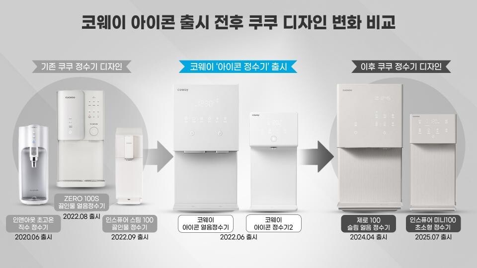 쿠쿠홈시스의 정수기 디자인은 아이콘 얼음정수기 출시 이후 확연히 달라진 경향을 보였다.