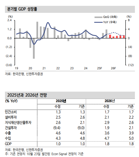 메리츠증권은 2026년 GDP성장률 전망은 2.2%에서 2.0%로 하향 조정했다.
