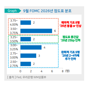 점도표 중간값이 2026년 1차례 인하 이하에 그칠 경우 연준 통화정책기조 불확실성이 온전히 해소되기 어렵다는 진단이다.