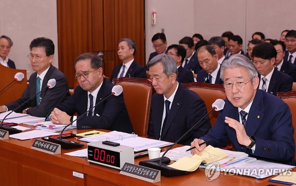 | 강호동 농업협동조합중앙회 회장이 24일 서울 여의도 국회 농림축산식품해양수산위원회에서 열린 국정감사에서 의원 질의에 답하고 있다. (사진=연합뉴스) |
