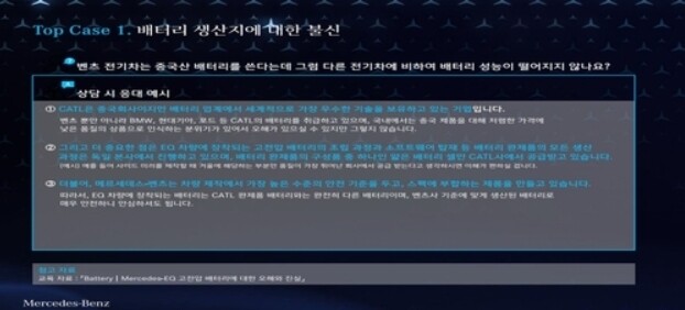 소비자와 상담할 때 CATL의 우수성을 강조하라고 안내하는 벤츠 교육 자료 (사진=연합뉴스) |