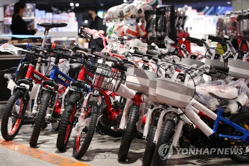 서울 시내 한 스포츠용품 가게에 전시된 자전거들. (사진=연합뉴스)