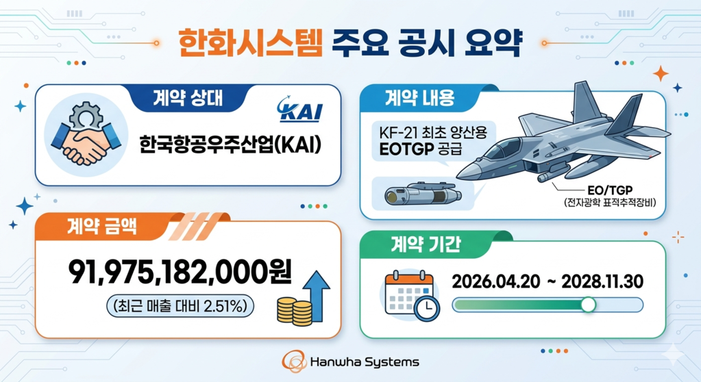 한화시스템은 올해 들어 이번 계약을 포함해 총 3건의 누적 공급 계약을 공시하며 견고한 수주 잔고를 쌓아가고 있다.