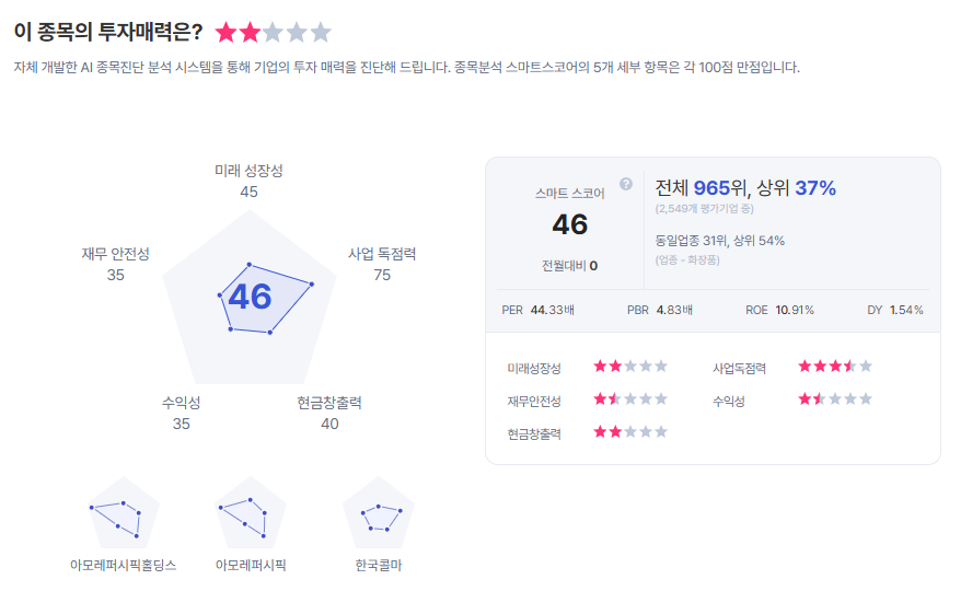 | 코스맥스 종목진단 (출처=초이스스탁) |
