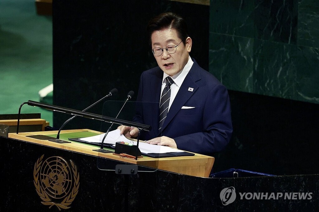 | President Lee Jae-myung delivers remarks at the Korea Investment Summit held at the New York Stock Exchange on Sept. 25 (local time). (Photo=Yonhap News) |