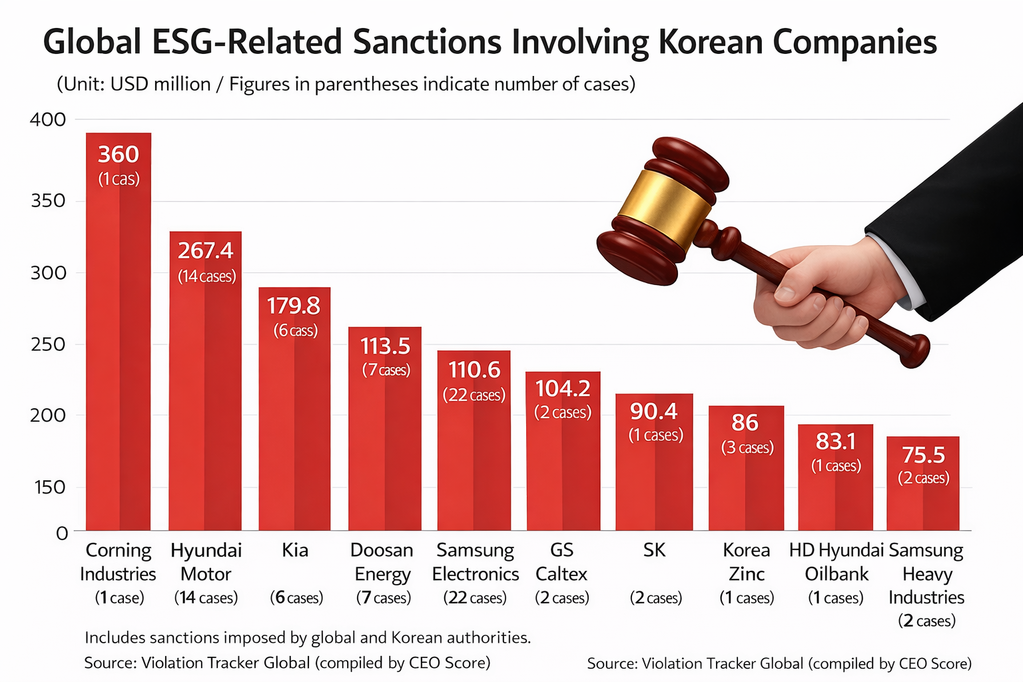 [Alpha Biz= Kim Jisun] Korean companies have been fined more than KRW 2.5 trillion (approximately USD 1.73 billion) over the past decade for violations of environmental, social, and governance (ESG) regulations overseas, according to a recent study.
