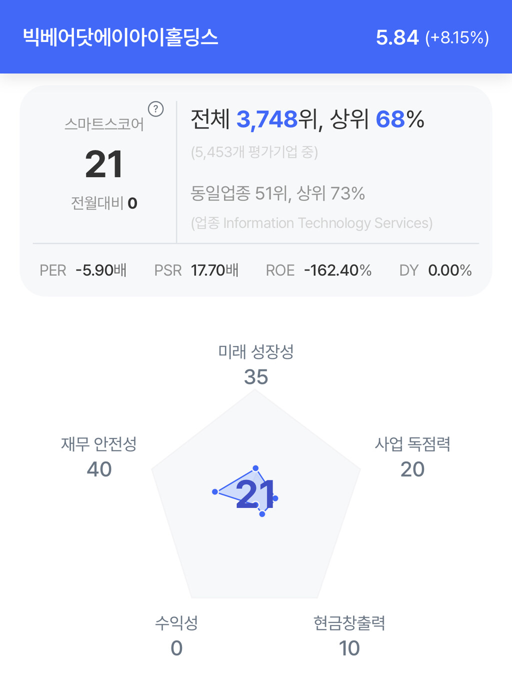 주가는 5.84달러로 8.15% 상승 마감했다.