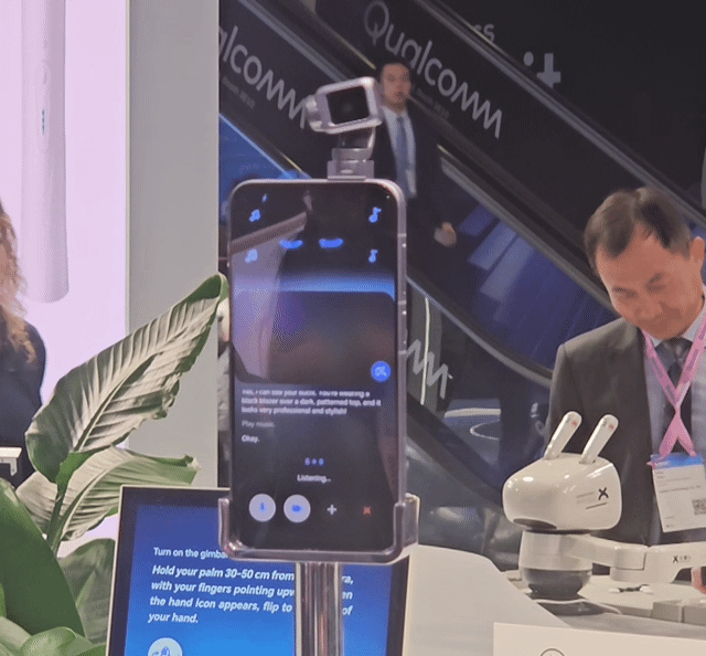 시연 현장에서 로봇 팔은 음악에 맞춰 카메라 모듈이 춤을 추고, 사용자의 음성 명령에 따라 고개를 끄덕이거나 가로젓는 제스처를 취했다. 360도 회전과 AI 피사체 자동 추적 기능도 지원해 눈길을 끌었다.