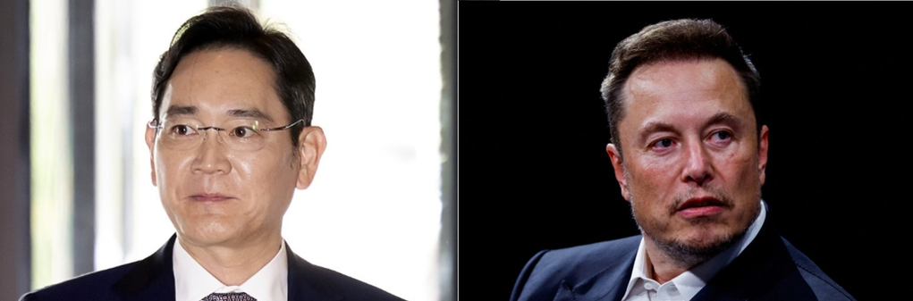 From left: Samsung Electronics Chairman Lee Jae-yong and Tesla CEO Elon Musk. (Photo: Yonhap News) |