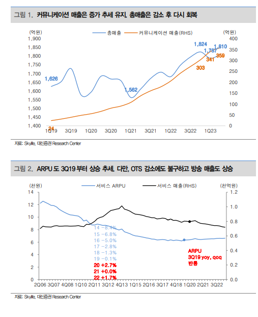 김회재 대신증권 연구원은 "방송은 가입자 감소가 지속되면서 매출 하락, 인터넷과 모바일 가입자가 급증하면서 통신 매출 증가가 방송 매출 감소를 상쇄했다"며 "이익이 개선되고 있지만, 개선폭은 아직 크지 않다"고 판단했다.