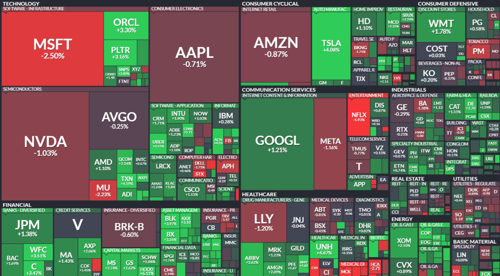 반면, 일부 인공지능(AI) 관련 제품 판매 목표치를 낮췄다는 보도가 나오면서 마이크로소프트는 2% 넘게 하락했습니다. 엔비디아, 애플, 아마존, 메타 등은 1% 가량 동반 약세를 보였습니다.