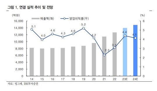 IBK투자증권에 따르면, 빙그레의 2분기 연결 매출액은 전년 대비 10% 증가한 4007억원, 영업이익은 27.4% 늘어난 268억원으로 추정되며, 컨센서스를 상회할 전망이다. 4월에도 좋은 판매 실적이 이어진 것으로 파악된다.