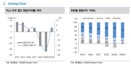 유정현 대신증권 연구원은 "지금은 재고를 줄이는 것이 매우 중요한 상황으로 손실이 커지는 점은 아쉬운 부분이나 유럽을 중심으로 하는 로열티 수입 호조, Acushnet의 호실적전망, 그리고 무엇보다 국내가 매출이 감소함에도 영업이익이 33% 증가가 예상되는 점을 고려하면 턴어라운드에 대한 기대감이 여전히 유효하다"고 판단했다.