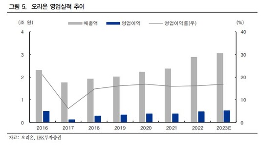 남성현 연구원은 "2022년 기준 오리온홀딩스의 연결기준 매출액이 2조 9346억 원이라는 점을 감안하면, 향후 2년간 성장률은 15%에 달할 것으로 추정한다"며 "이에 따라 오리온그룹의 펀더멘탈도 성장하는 구간에 진입한 것으로 분석된다"고 밝혔다.