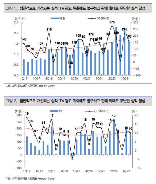 김회재 대신증권 연구원은 "스튜디오드래곤의 실적 중 tvN 광고에 연동된 실적이 약 10% 정도 감소한 것으로 추정되는 것 대비 양호한 성과"라며 "하반기는 상반기 대비 TV광고 개선이 전망되면서 하반기 OP는 327억원으로 전년 대비 63% 증가가 전망된다"고 밝혔다.