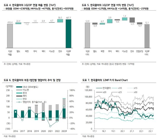 1분기는 일회성 영향으로 별도와 무석의 호실적에도에도 아쉬운 손익을 기록했으나, 업황 회복이라는 긍정적 요소 확인했다는 평가다. 하나증권은 이익모멘텀은 하반기 보다 강화될 것이라며 한국콜마에 대해 투자의견 '매수'와 목표주가 5만5000원을 유지했다.