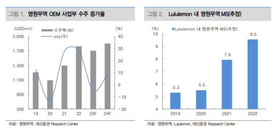 특히, OEM 사업부의 경우 동사의 기능성 우븐 제품 시장은 일반 니트 시장에 비해 상반기 호실적이 이어졌으나 전년도 실적 기저 부담과 고객사 재고 조정 시점 차이 등으로 달러 매출액이 전년 대비 18% 감소했다.