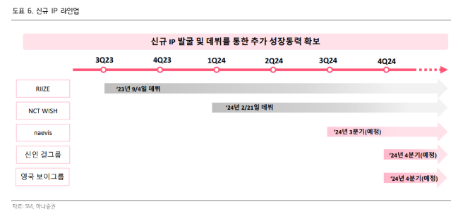 또한, 한국 신인 걸그룹 역시 연내 데뷔 예정이다. 영국 보이 그룹과 한국 걸그룹이 성공적으로 데뷔한다면 5년차 이하 그룹만 4팀으로 향후 실적과 밸류에이션 측면에서 모두 긍정적인 모멘텀이 예상된다는 판단이다.
