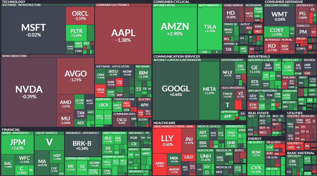 뉴욕증권거래소(NYSE)에서 다우존스30산업평균지수는 전장보다 1.23% 상승한 4만8977.18에 마감했습니다. 이날 다우지수는 장중 및 종가 기준 사상 최고치를 기록했습니다. 대형주 위주의 스탠더드앤드푸어스(S&P)500지수는 0.64% 오른 6902.05, 기술주 중심의 나스닥 종합지수는 0.69% 상승한 2만3395.82로 장을 마쳤습니다.