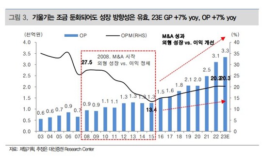 대신증권은 15일 제일기획에 대해 경기 위축에 대한 우려 있지만, 주요 광고주의 마케팅비 집행은 견조하고, 비계열 광고주 발굴 및 디지털 중심의 성장으로 실적 개선은 지속될 것이라며 투자의견 '매수'와 목표주가 3만3000원을 유지했다.