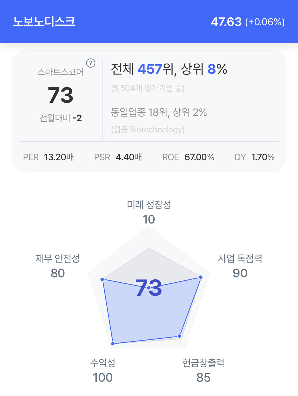 | 노보 노디스크 주가 분석. (자료=초이스스탁) |