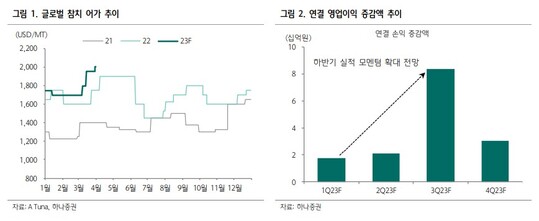 심은주 하나증권 연구원은 "글로벌 어가는 코로나를 겪으면서 레벨업 되는 모습을 보여줬다"며 "2019년 톤당 1,200불에 불과했던 글로벌 어가는 2020년 1340불에서 2021년 1380불, 2022년 1680불을 기록했다"고 설명했다. 코로나에 기인한 방역 강화, 유가 및 인건비 등 운영 비용 상승 등이 주요 원인으로 판단된다.