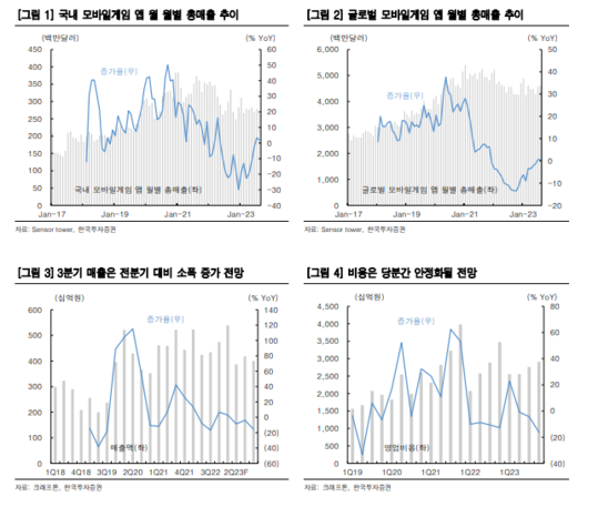 한국투자증권에 따르면, 크래프톤의 3분기 매출액은 4179억원으로 전년 대비 3.7% 감소하고 영업이익은 1415억원으로 2.2% 줄어 컨세서스를 소폭 밑돌 것으로 추정된다. PC게임 매출액은 1253억원으로 프로모션 및 이스포츠 리그 결승전 영향 등으로 2분기 대비 회복이 예상된다. 모바일게임 매출액은 2770억원으로 화평정영 매출이 안정화되고 2분기 말 서비스가 재개된 BGMI 매출이 온기 반영되며 개선될 전망이다.