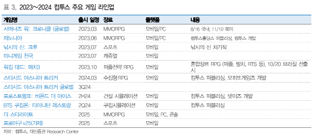 하반기 퍼블리싱 신작 3종인 스타시드 아스니아의 글로벌, 프로스트펑크, BTS 쿠킹온과 2025년 자체 게임 2종인 더 스타라이트, 프로야구V25(가제)가 출시될 예정이다.