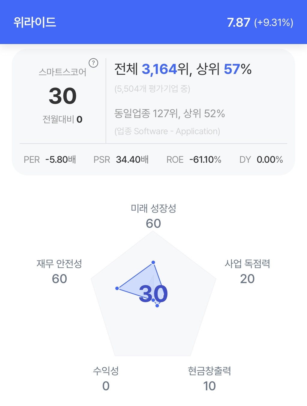 | 위라이드 주가 분석. (자료=초이스스탁) |