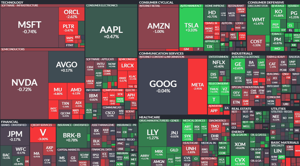 기술주를 중심으로 하락세가 나타난 가운데 엔비디아가 0.72% 내렸고, 마이크로소프트와 아마존, 메타, 알파벳 등이 1~2% 가량 하락했습니다.