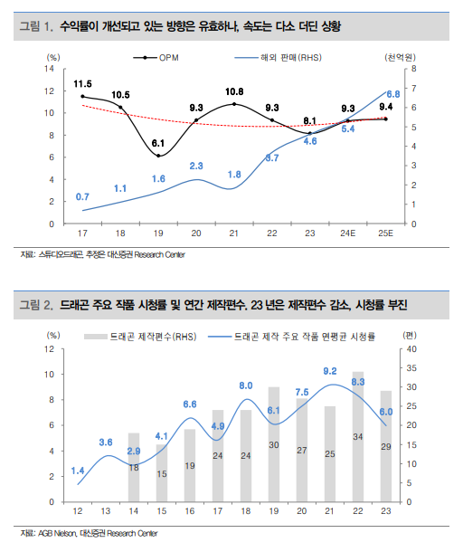 다만, 글로벌 OTT향 제작 편수는 유지되고, 2023년 갱신된 계약 조건이 2024년에 온전히 반영되기 때문에, 마진은 개선될 것이란 전망이다.