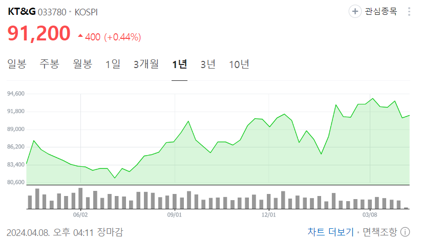 | KT&G 주가추이 (출처=네이버증권) |
