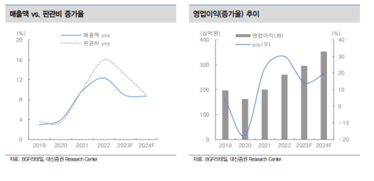 유정현 연구원은 "2023년 다소 부진한 실적을 기반으로 2024년 영업이익은 전년 대비 15% 성장이 전망된다"며 "이는 지난 해 커진 판관비 증가 부담이 올해는 다소 완화될 것으로 예상되기 때문"이라고 분석했다.