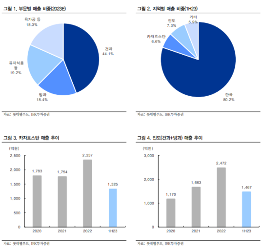 김태현 IBK투자증권 연구원은 "건과 매출은 국내 자일리톨과 빼빼로 등 메가 브랜드 판매 호조세가 지속되는 가운데, 인도와 카자흐스탄의 판가 인상 효과가 더해져 외형 및 수익성이 모두 개선될 것"이라고 전망했다.