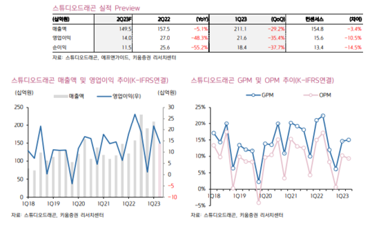 이남수 키움증권 연구원은 "광고 업황 부진이 반영된 국내 방송 편성이 콘텐츠 편성 매출에 영향을 주고 있지만 국내 편성 감소에도 불구하고 글로벌 OTT 플랫폼 다각화에 따른 판매 매출은 견조히 유지되고 있어 탑라인 방어는 가능할 것"이라고 판단했다. 그러나 K-드라마의 글로벌 히트에 따른 배우 개런티 상승, 인플레이션 등에 따른 제작비 챌린지와 누적된 상각비 영향은 당분간 지속될 것이란 전망이다.