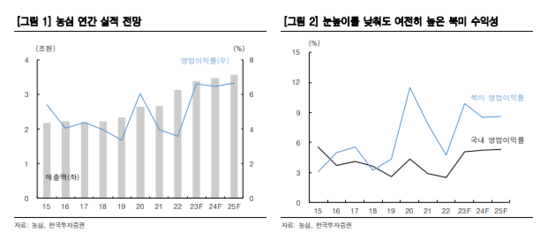 영업이익이 컨센서스를 하회하는 가장 큰 이유는 북미 법인의 수익성 하락으로 꼽힌다. 코스트코 프로모션 강화, 신라면 골드 월마트 입점 확대 등으로 마케팅 비용 지출이 증가했기 때문이란 분석이다.