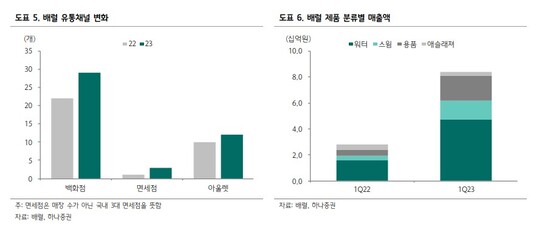 김규상 연구원은 "대표적인 해양레저 서핑의 국내 인구는 2019년 약 40만명, 2022년에는 약 100만명에 달하는 것으로 추산한다"며 "이외에도 다이빙, 카누와 카약, 웨이크보드 등의 해양레저가 꾸준히 증가하고 있으며 활동 시 자외선으로 인한 화상 예방과 안전상의 이유로 래쉬가드의 수요는 꾸준히 증가할 것"이라고 전망했다.