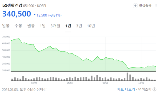 | LG생활건강 주가추이 (출처=네이버증권) |