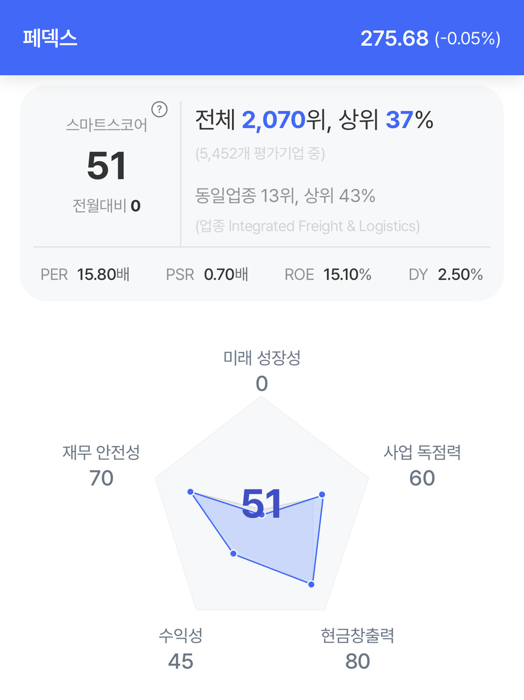 페덱스 주가는 0.05% 하락 후 275.68달러로 마감했다.