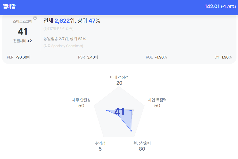 | 앨버말 종목진단 (출처=초이스스탁) |