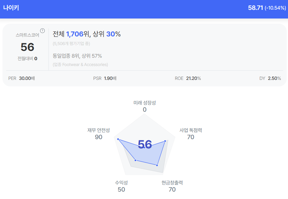 | 나이키 종목진단 (출처=초이스스탁) |
