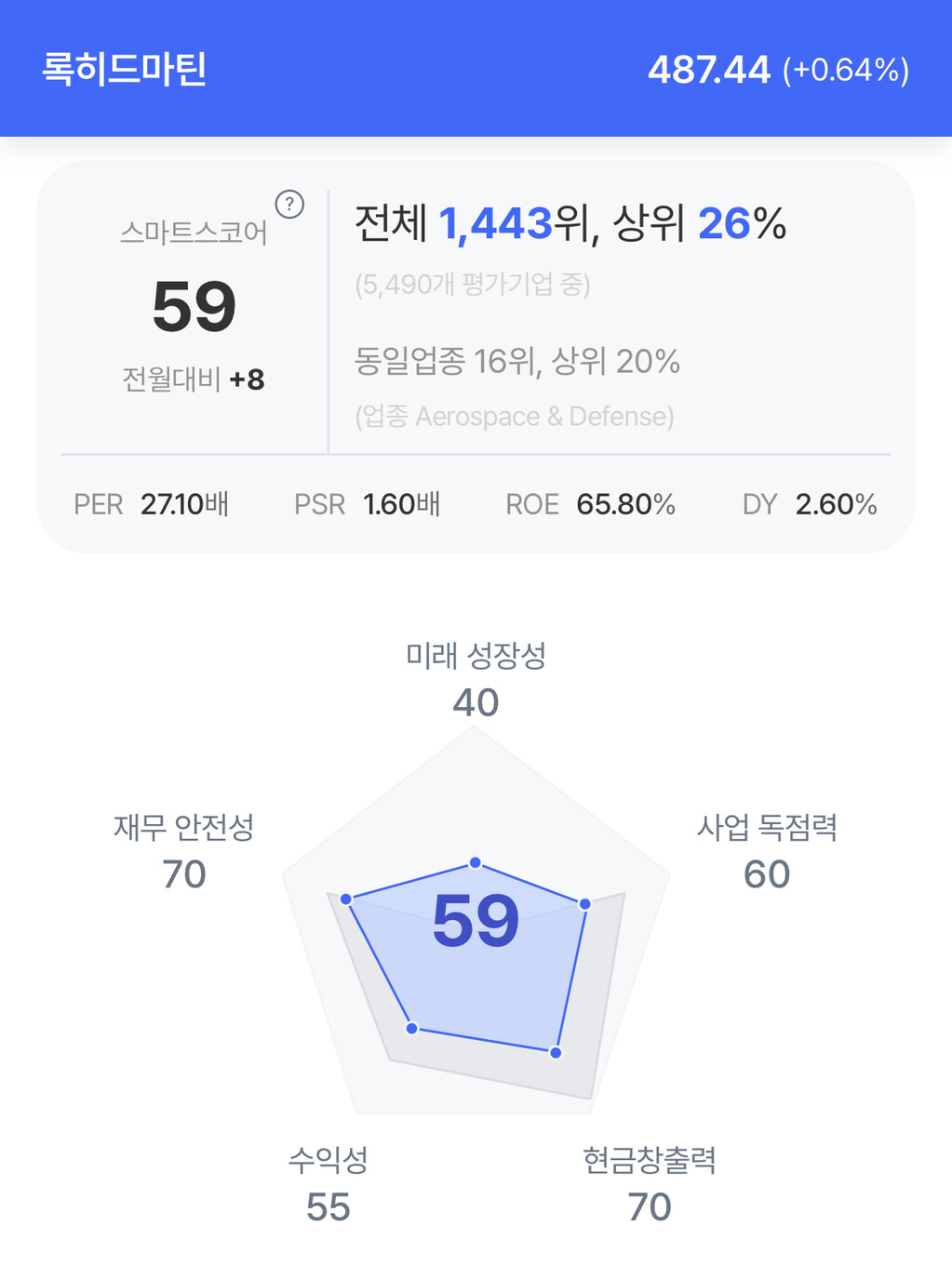 | 록히드마틴 주가 분석. (자료=초이스스탁) |