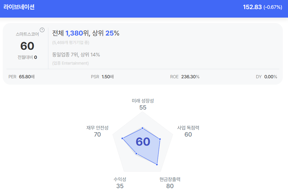 | 라이브네이션 종목진단 (출처=초이스스탁) |