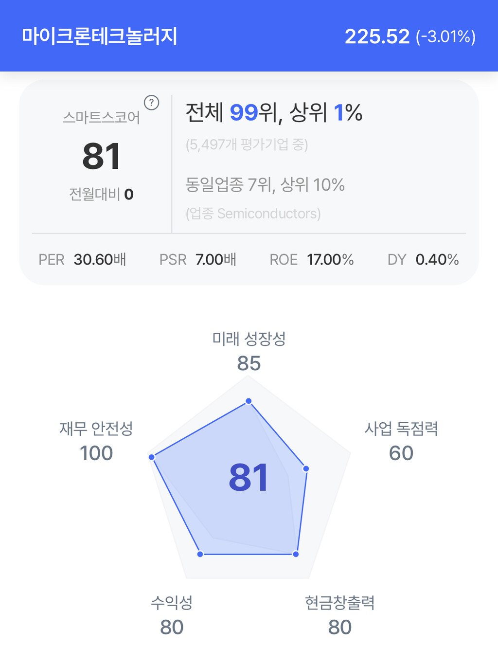 | 마이크론테크놀로지 주가 분석. (자료=초이스스탁) |