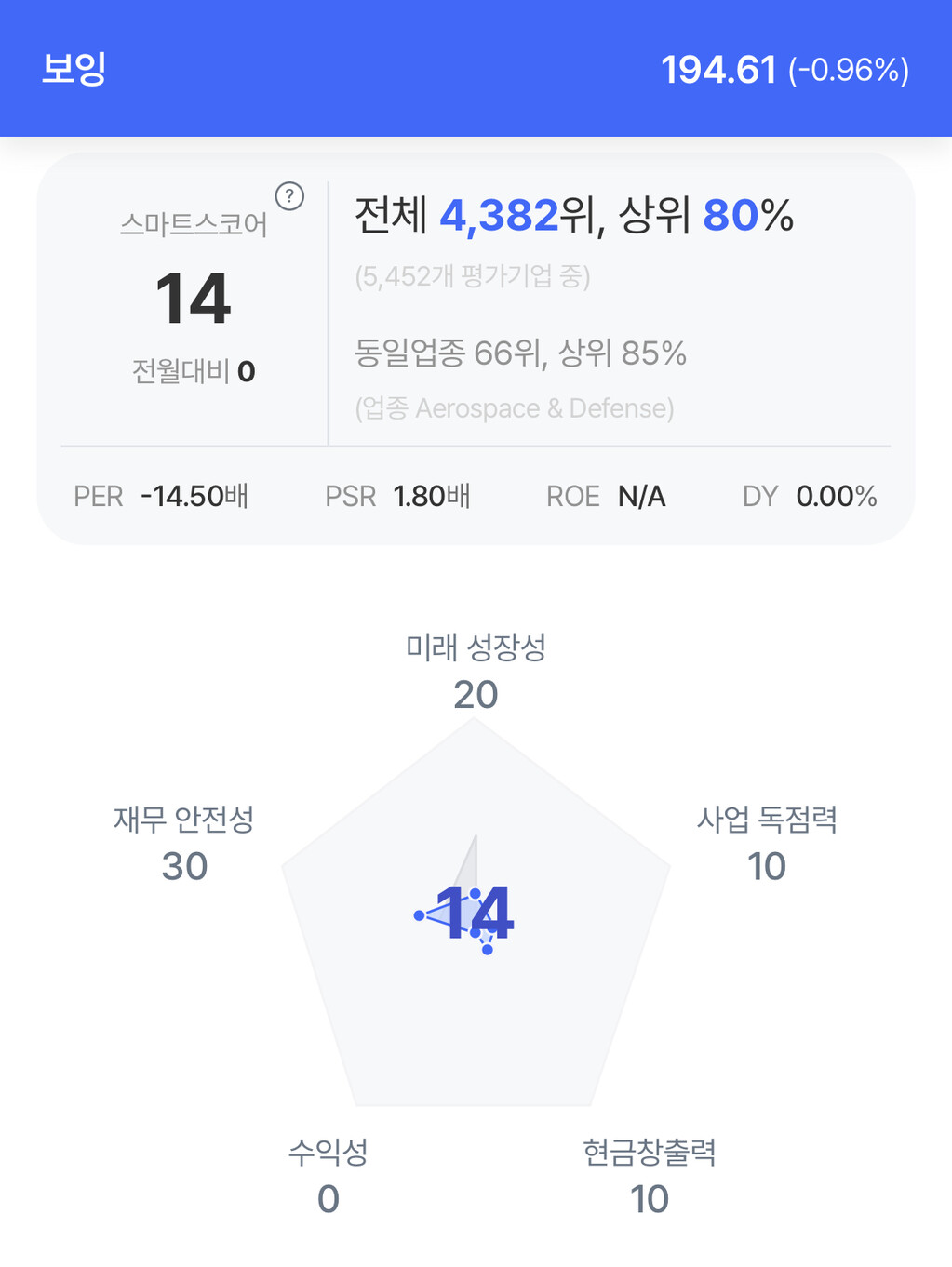 | 보잉 주가 분석. (자료=초이스스탁) |