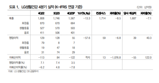 [알파경제=박남숙 기자] LG생활건강(051900)의 4분기 실적이 낮은 시장 기대치에 부합했다.