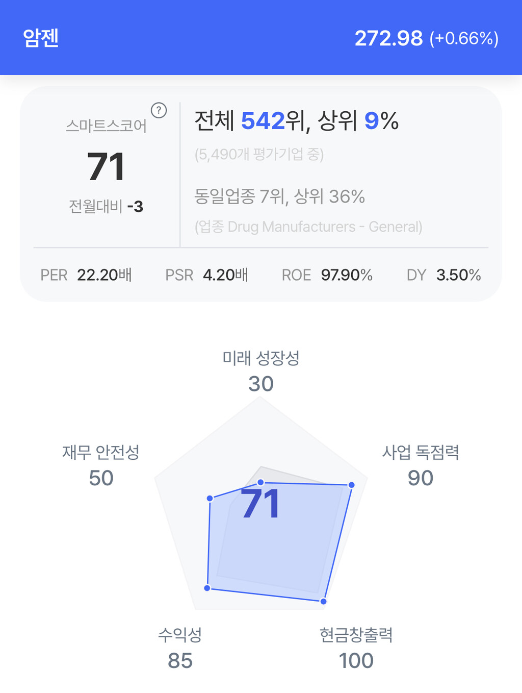 주가는 272.98달러로 거의 보합세를 보였다.