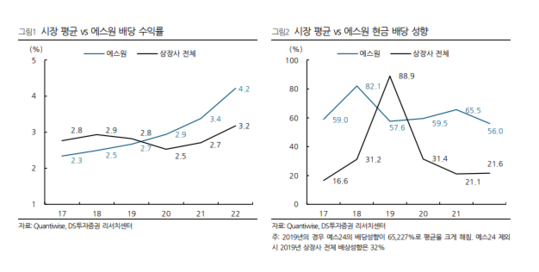 에스원은 보안 산업 내 시장 점유율 1위의 업체로 매년 역성장 없는 안정적인 실적을 실현하고 있다. 특히 실적을 바탕으로 한 꾸준한 현금흐름을 통해 50% 이상의 배당 성향을 유지하고 있다는 평가다.